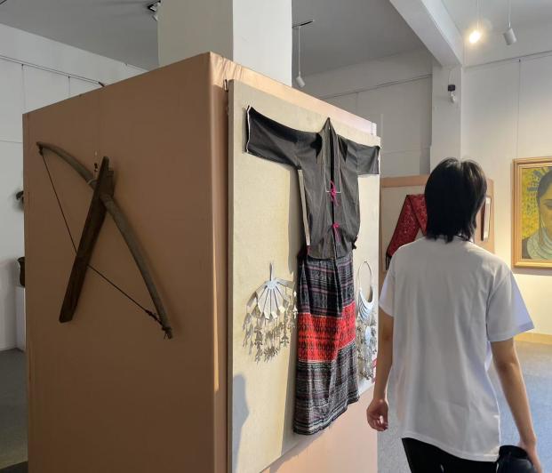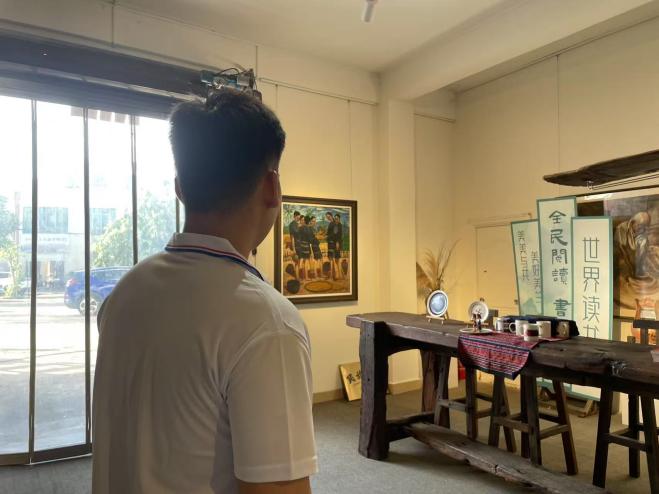 民族艺术馆成为同学们驻足许久的地方。馆内陈列着极具黎族民族特色的传统手工艺品、服饰、器具等,精美的刺绣、古朴的银饰、绚丽的织锦,每一件展品都承载着深厚的民族文化底蕴,让同学们深刻感受到了民族文化的博大精深。毛笔书法作品展中,或苍劲有力、或飘逸灵动的书法作品,彰显着中华书法艺术的独特韵味,令同学们赞叹不已。