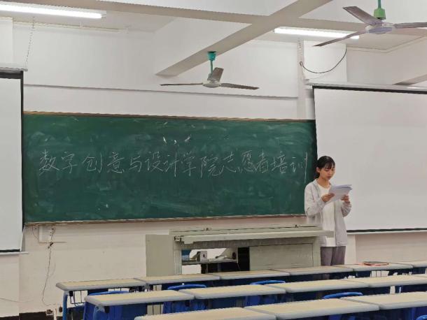场地布置工作圆满完成后,全体志愿者前往第二教学楼 710 教室参加迎新专项培训会。培训会开始,22 级环艺五贯 1 班的陈麒妃同学率先分享经验,结合去年参与迎新的亲身经历,从服务细节、沟通技巧等方面为志愿者们提供实用参考,让大家对迎新工作有了更直观的认知。随后,团总支书记符明月针对迎新工作的具体分工,分别详细讲解了报道组、引导组、后勤组等各小组的职责与工作流程,明确任务节点与服务标准,确保每位志愿者都能清晰掌握工作要点。
