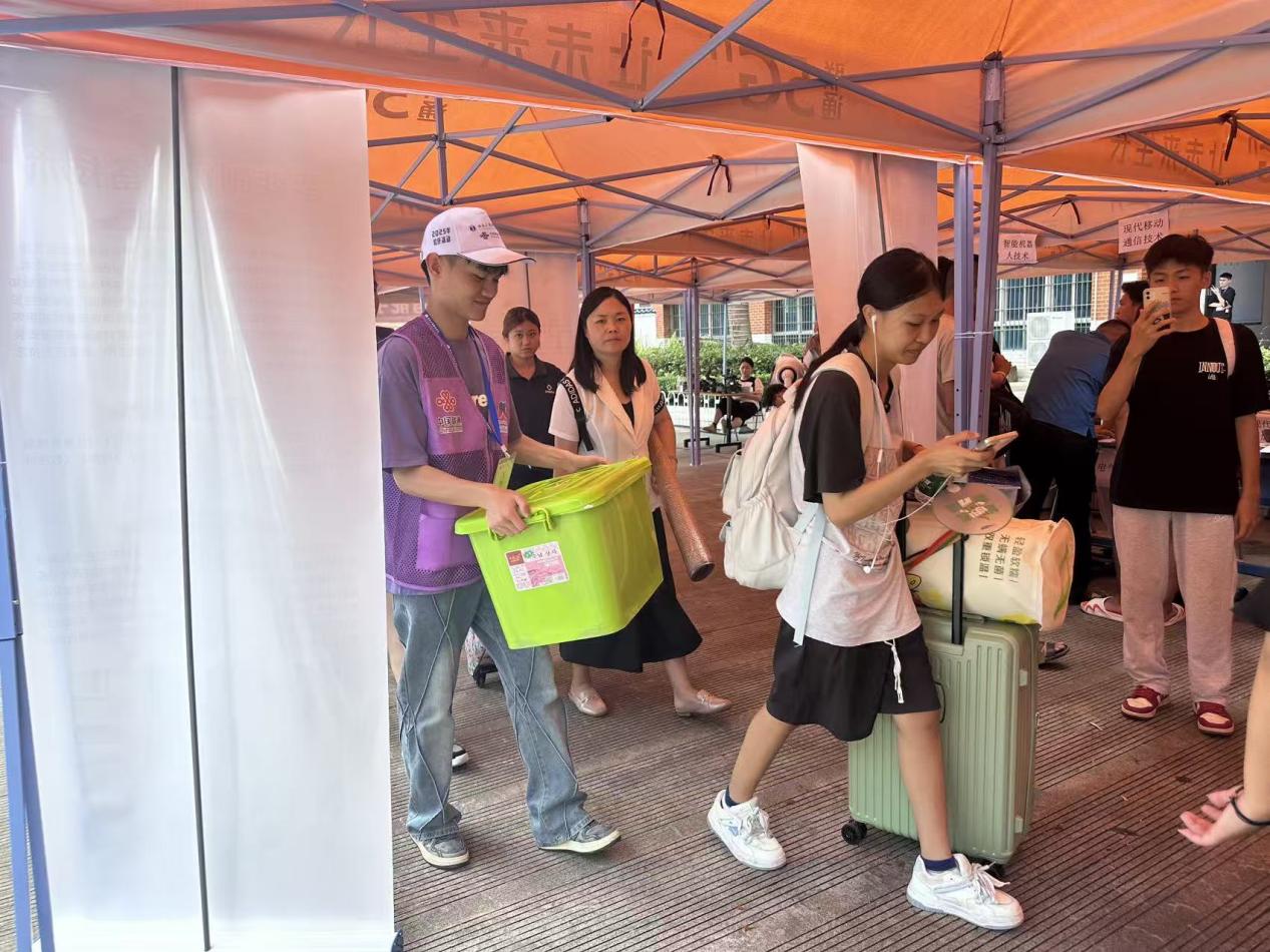 引导组针对零星到来的新生,依旧保持 “一对一” 服务,帮提行李、引至宿舍,细致讲解校园设施使用细节。