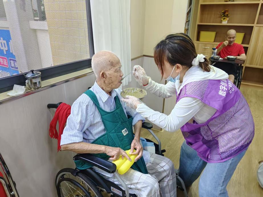 志愿者们还贴心地为长者们提供按摩服务。他们轻轻揉捏着长者们的肩膀和后背,询问着力度是否合适,长者们纷纷表示按摩后感觉十分舒服,身体也轻松了许多。到了饭点