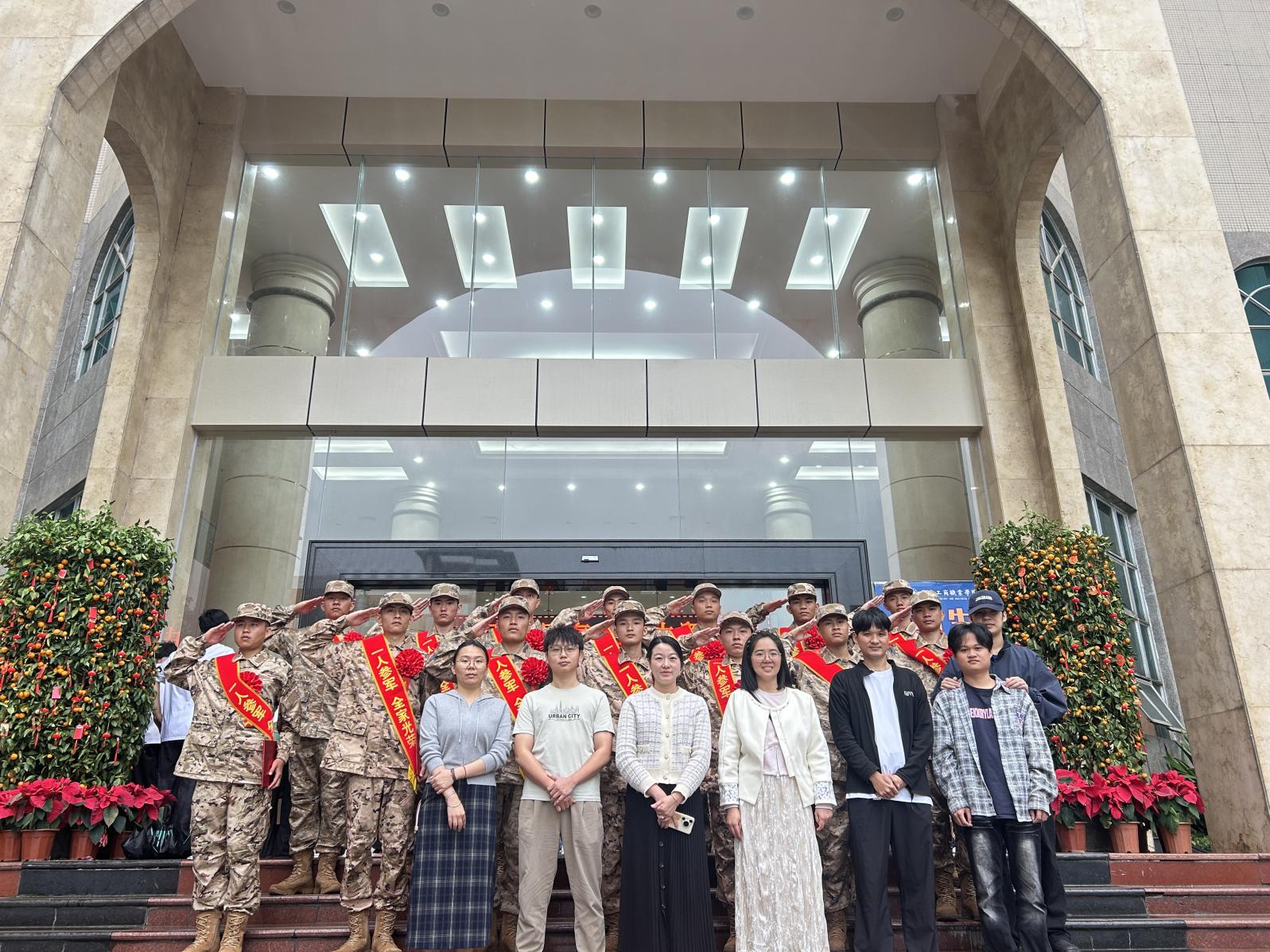 今年春季,数字创意与设计学院共有14名优秀学子,经过层层筛选,从学校光荣应征入伍,数字创意与设计学院党支部书记苏微微带领支部委员、辅导员代表到场参加欢送仪式,并亲自为光荣入伍学子戴上红花,送上精心准备的礼物。他们与学生亲切交谈,暖心叮嘱。传递学院的关怀与祝福,叮嘱他们在军营中不忘初心、砥砺前行,不负韶华、不负期望。