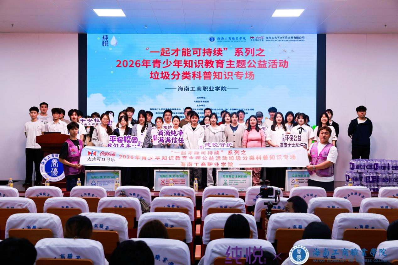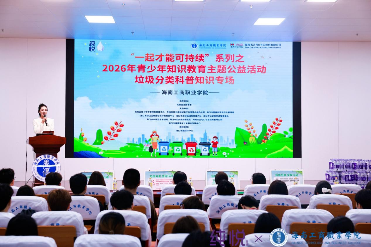 2026年3月16日晚,海南工商职业学院第三学术报告厅内气氛热烈,“一起才能可持续”2026年青少年知识教育主题公益活动——垃圾分类科普知识海南工商职业学院专场在这里举行。本次活动由共青团海南省委指导,海南省红十字灾害应急中心等多家单位共同举办,旨在进一步提升青少年生态文明素养,普及垃圾分类知识,凝聚环保共识,助力海南自贸港绿色发展。在我校团委的组织号召下,共有380名学生积极参与活动,现场座无虚席。