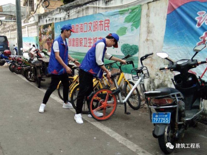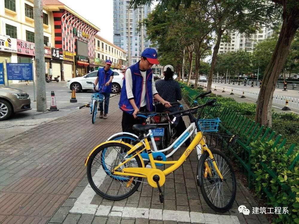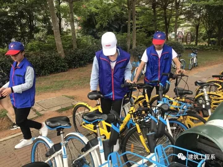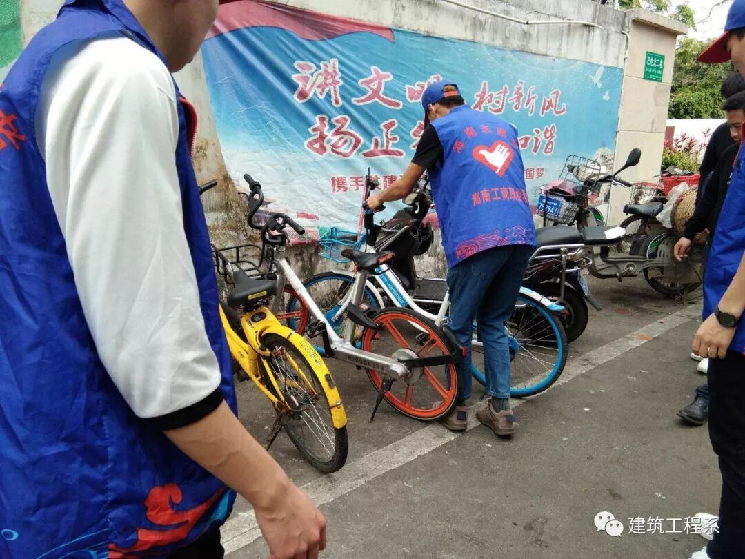 为了用实际行动传播“雷锋”精神,弘扬文明行动为正能量。2018年3月25日上午,建筑工程学院志愿者服务队28名同学,利用周末时间到学校周边文坛路、兴丹路等街道,将乱停乱放的共享单车摆放整齐,协助清理学校周边街道环境。志愿者们的行动得到了周边市民们和社区工作者的大力赞扬,展示了我校学子团结互助、友爱奉献的精神风貌。