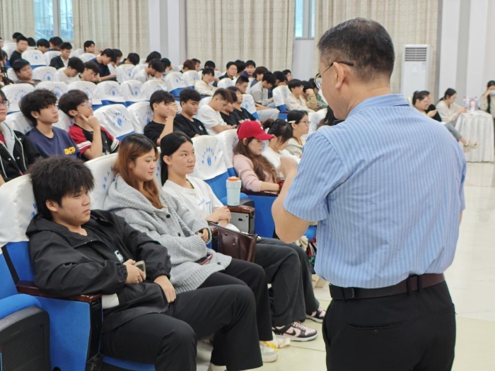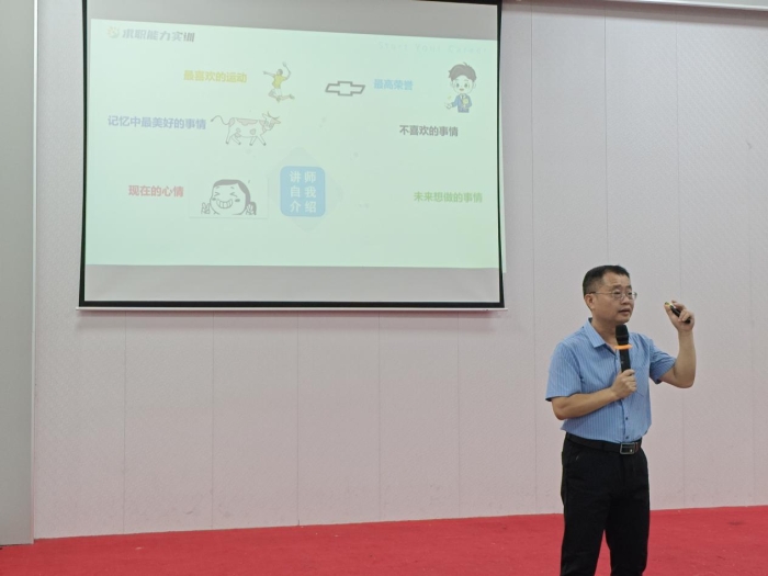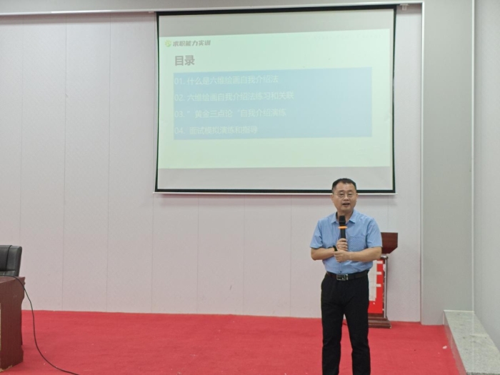 讲座开始,林新苗老师以一个引人深思的问题切入:“求职面试时,面试官最常问的问题是什么?”引起现场学生的思考与兴趣。他指出,精准的自我认知是成功求职的基石,而本次讲座的核心,便是教会大家运用“六维绘画自我介绍法”与“黄金三点论”两大工具,在面试中清晰、立体地呈现自我。