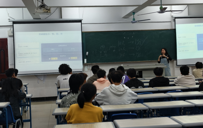 为深入落实“一站式”学生社区建设要求,将成长服务精准送达学生身边 。2025年11月26日,我院2025级辅导员文晓惠老师,在社区内以“轻松闯关,自信发声”为主题,为所带软件技术与动漫制作技术专业报名普通话水平测试的80名学生,举办了一场针对性、实用性极强的 考前冲刺培训。本次培训聚焦实战策略与心态调整,旨在帮助考生在短时间内掌握提分要领,从容应考。