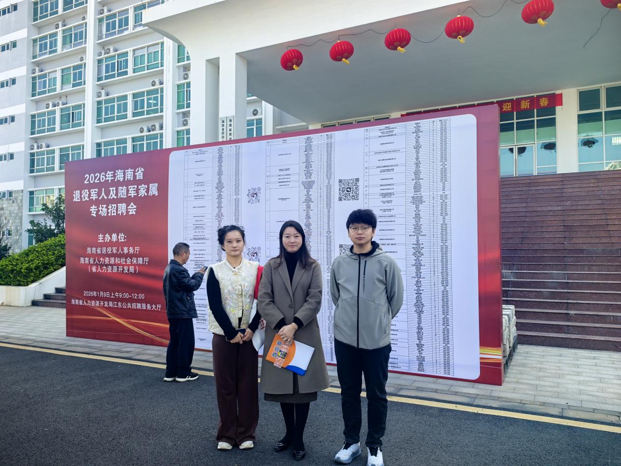 为深入贯彻落实我校2026届毕业生就业工作部署,拓宽毕业生就业渠道,2026年1月9日,数字创意与设计学院党支部书记苏微微带领2026届毕业生辅导员韩然、团总支书记向俊洁,前往海南省退役军人及随军家属专场招聘会,主动对接企业需求,精准拓展就业岗位,全力促进毕业生高质量就业。