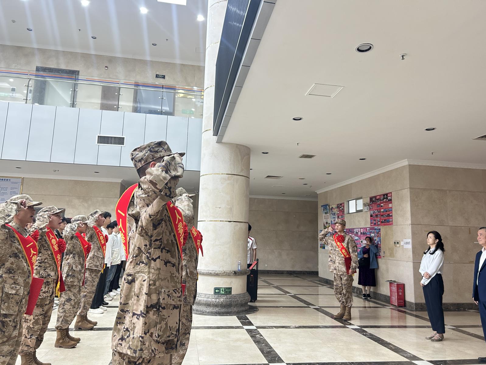 现场,入伍学生队伍整齐有序、纪律严明,个个精神饱满、情绪激昂,眼神中满是对军营生活的憧憬与报效祖国的坚定。铿锵的步伐、昂扬的姿态,彰显着青年学子携笔从戎、投身国防的青春担当。