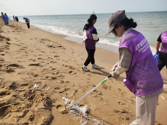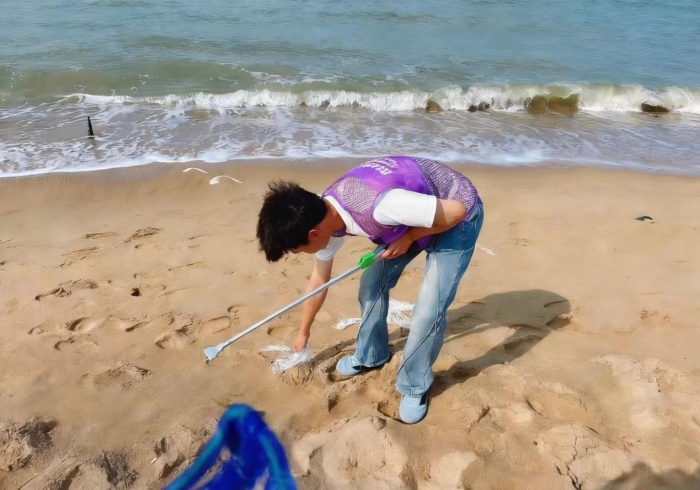清理过程中,志愿者们主动向过往游客宣传环保知识,倡导“无痕游玩”理念,呼吁大家自觉爱护公共环境,不乱扔垃圾,共同守护美丽的滨海风光。不少游客深受感染,纷纷加入到清理队伍中,形成了“志愿引领、全民参与”的良好氛围。此次活动不仅搭建了校园与社会联动的全方位育人平台,更让学生在社会服务中学会沟通、懂得奉献,实现专业素养与综合品德的双向提升。