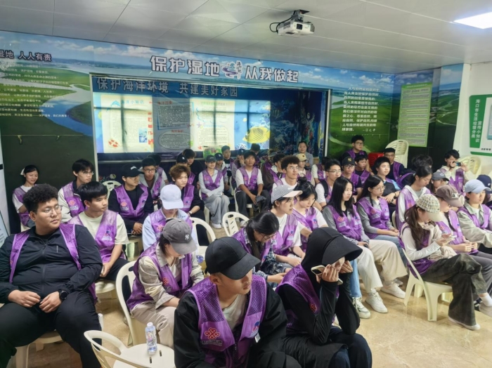 活动当天,志愿者们身着统一的紫色志愿马甲齐聚白沙门环保教育站,在专业指导下系统学习海洋保护知识,筑牢环保认知基础。随后,所有志愿者集中宣誓,立下以实际行动践行志愿精神、守护生态环境的誓言,将思政教育与实践行动深度融合,实现全程育人的理念渗透。