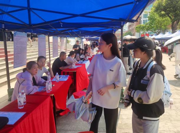 当天,学院专任教师、辅导员依托社区育人力量,分别组织 2023 级毕业生及 2024 级部分学生代表到场参加,并在现场围绕简历优化、面试技巧、职业选择、留琼政策等内容给予学生一对一指导和专业分析,把 “一站式” 社区的暖心服务延伸至招聘一线。